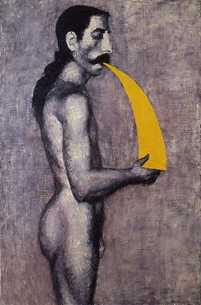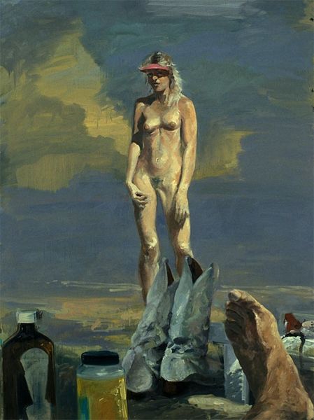 Eric Fischl painted *Girl with Doll* using what looks like oil on canvas, and right away you can see it’s not about perfection, it's about the feel of a moment. The paint here is pretty thin, almost watery in places, which gives the whole thing a kind of hazy, dreamlike quality. Look at the way he’s handled the light around her body - it's not blended perfectly, you can see the brushstrokes, the little drips of paint going every which way. And, the doll! It's all smudged and blurred, like a half-forgotten memory. That yellow patch behind the girl, it’s not just background, it’s a mood, a feeling. The way Fischl lets the paint drip down from that yellow area, it reminds me of the way Francis Bacon would let things slide and smear, embracing the messiness of it all. It's like he’s saying, "Hey, life isn't clean, so why should art be?" It’s like he’s inviting you to feel something, not just see something.