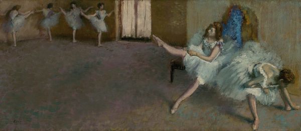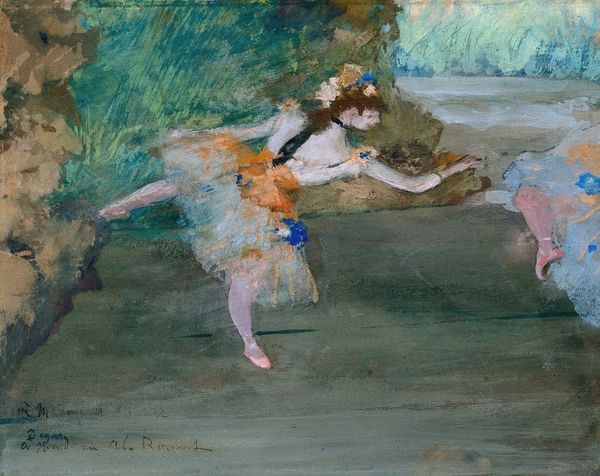 Edgar Degas created this painting, Dancer Posing, using oil on canvas. The visible brushstrokes and the way the paint has been applied in layers gives a real sense of movement to the dancer's pose. Degas was fascinated by the ballet, but not just the beauty of it. He was interested in the labor, the relentless repetition, and the discipline required. Here, the dancer is captured in a moment of practice, not performance. The materiality of the paint itself, applied in such a way that it captures the fleeting nature of light and movement, contrasts with the intense labor required to achieve such fleeting perfection. The artwork, while seemingly capturing a scene of beauty, also hints at the social context of ballet dancers in the late 19th century - often working-class women striving for success in a demanding and hierarchical world. This painting encourages us to see beyond the surface and consider the dedication and effort involved in the pursuit of artistic excellence.