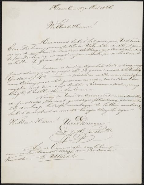 Brief aan de commissie van de Tentoonstelling van Levende Meesters in Haarlem Possibly 1825
