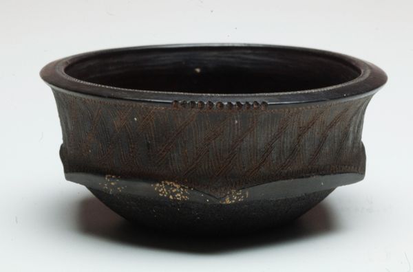 Editor: So, here's Michel Cardew's "Double Bowl" from the Tate collection, date unknown. The earthy colors give it such a grounded feeling. It feels both ancient and modern at once. What do you think about this piece? Curator: Ah, Cardew's pottery... It whispers of a life lived close to the earth, doesn't it? The glaze, that olive-green pool, it’s like looking into a still pond at twilight. And those markings? They're like calligraphy, strokes of pure instinct. Makes you wonder what he was thinking, doesn't it? Editor: Definitely! It does make me wonder if this was meant to be a centerpiece or a functional object? Curator: Perhaps both, you know? Beauty in utility, the everyday elevated. Cardew blurred those lines intentionally. Now, I see a connection to a simpler life. What about you? Editor: I agree about seeing that connection. I think I appreciate the craftsmanship of it. Curator: Exactly. A reminder that even in our digital age, there's still magic in the handmade.