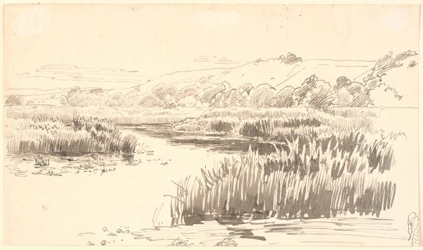 James McNeill Whistler created this etching, titled "Sketching, No. 1," using fine lines to depict a serene landscape. The scene is dominated by the river and its banks, where tall grasses grow, mirroring the ancient artistic motif of water as a symbol of life and renewal. We see echoes of this in Egyptian art, where the Nile's annual floods dictated life's rhythm, or in the mythic waters of baptism, signifying spiritual rebirth. Look at the solitary figure of the artist, poised with his tools, capturing the transient moment, and perhaps, his own soul. Consider how Leonardo da Vinci, centuries before, also sought to capture the essence of nature's fleeting beauty. Whistler, like those who came before him, seems to be engaged in a dialogue with nature, attempting to distill its essence onto a medium. This act of creation is powerful, echoing the human desire to understand our place within the cosmos.