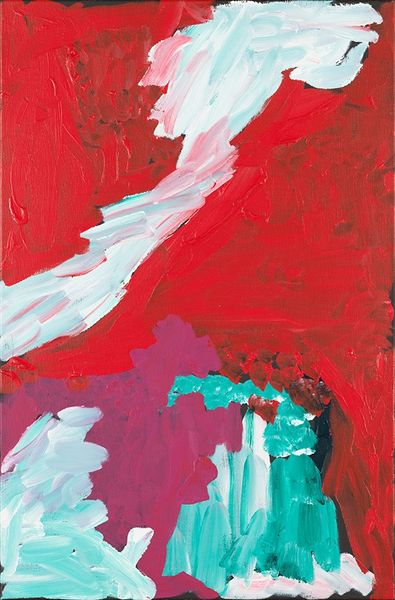 Charles Clough made this untitled painting with paint on a small piece of paper. It's a wild ride of colour, more about the feeling of painting than a picture of something. I see juicy brushstrokes, like trails of thick, glossy paint squeezed right from the tube. Look at that dollop of red in the lower left corner! It’s almost cartoonish, but the way it sits there, casting a tiny shadow, brings it back to earth. And the green strokes, unapologetically bright. Clough doesn't hide his process. Each mark is a record of a decision, a playful act of layering and obscuring. It reminds me of Guston, but with a sweeter vibe. It’s like he's saying, "Here's the mess, here's the fun, here's the painting." It’s open-ended, generous. And like all good art, it invites you to bring your own questions and interpretations to the mix.