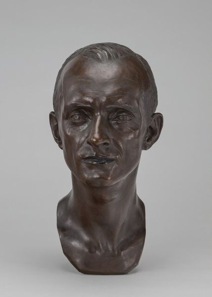 Editor: So, this is Henri Gaudier-Brzeska's bronze sculpture, "Major R.H. Raymond Smythies." The way the light catches those rough textures is amazing. What do you see in this piece, beyond just a portrait? Curator: For me, it's the tug-of-war between representation and raw feeling. It's as if Gaudier-Brzeska is trying to capture the Major's very essence, that spark of life, with hands still covered in clay. Don’t you feel that tension? Editor: I do, actually. Almost like the Major is straining to be seen. Thank you, that was incredibly helpful. Curator: My pleasure! It’s always a delight to see art breathe new life into perception.