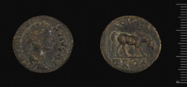 Editor: Here we have a coin of Damascus, minted under Trebonianus Gallus. The bronze is worn, but I find it evocative. What narratives do you think objects like this carry? Curator: I see a story etched in time, a tangible link to a distant era. Coins like these were the mass media of their day, spreading imagery, power, and ideals. Look at the details, like the stag. It might represent a local deity, or perhaps the prosperity of the region. Editor: It is kind of amazing to think about it that way. What do you make of the emperor's portrait on the other side? Curator: The portrait is a statement of authority, isn't it? Even in miniature, it projects strength, even divinity. It’s a tiny propaganda machine. The past really is present in the palm of your hand when you see something like this. Editor: I never considered that. It’s more than just an old coin. Thanks. Curator: My pleasure. There's always a good story to be found, and, sometimes, you only need a good eye.