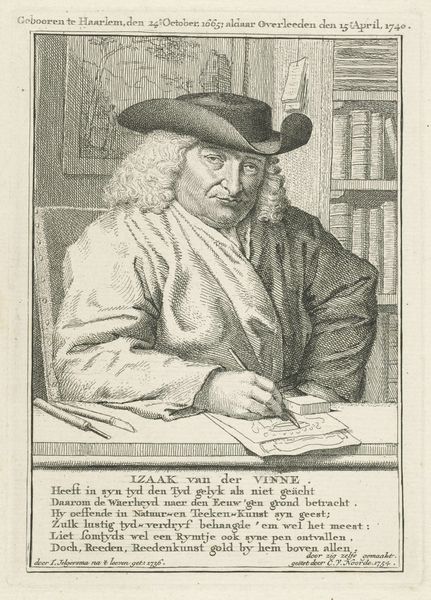 Cornelis van Noorde created this portrait of Willem Opperdoes as an engraving in 1774. Immediately, the sitter's hat grabs our attention with its striking, upturned brim. Hats, throughout history, have often symbolized status and identity, but here it is a declaration of individuality. Consider, for instance, the feathered hats of Renaissance courtiers versus the austere bonnets of the Dutch Golden Age. Each tells a story of its time. This hat, however, defies convention with its flamboyant curl, reminiscent of a jester’s cap, yet worn with the gravity of a seasoned man. Perhaps this whimsical element reflects a deeper psychological aspect: a playful defiance against the weight of the world. It's a motif that reappears through art history. Think of the fool in Shakespeare, who speaks truth to power. This hat, then, is not merely an article of clothing, but a symbol of resilience and personality, bending but not breaking under the pressures of society.