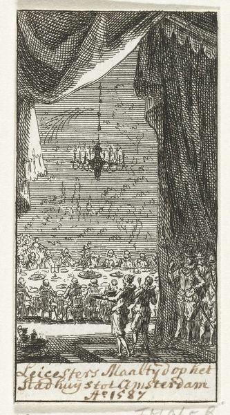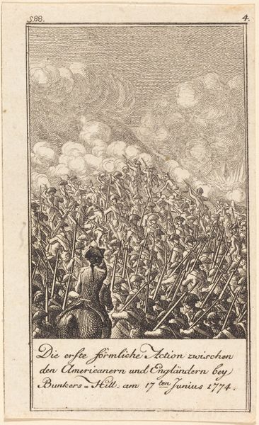 Curator: Jean François Janinet created this piece, "M. de Lafayette Disarms the Soldiers Who Assembled on the Champs-Elysées and Escorts Them to Saint Denis," around 1790. Editor: My immediate impression is one of restraint. The grayscale palette creates a very somber, almost mournful mood despite the implied action. Curator: Yes, and the piece documents a pivotal moment. Lafayette, a key figure in the French Revolution, defusing a potential conflict. The image presents him as a figure of control. Editor: The forest background feels symbolic. It’s almost a looming presence, suggesting the chaotic, uncertain times and the shadow of what’s to come. Almost like a dark omen. Curator: Indeed, it speaks to the larger societal forces at play. Janinet seems to be positioning Lafayette within a very specific socio-political context. Editor: Seeing Lafayette depicted in this way, as a pacifying force, certainly invites reflection on how we choose to remember and represent historical figures. Curator: Precisely, and how such images shape our understanding of the French Revolution and its key players.