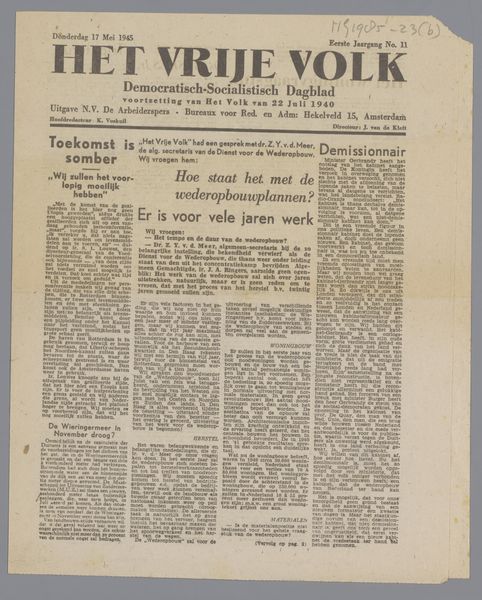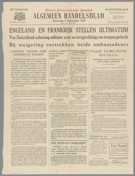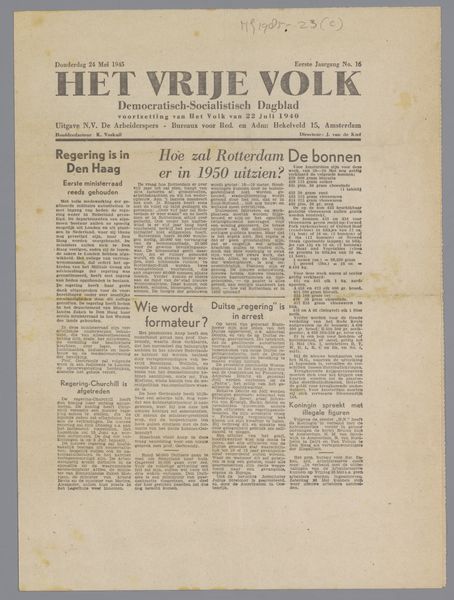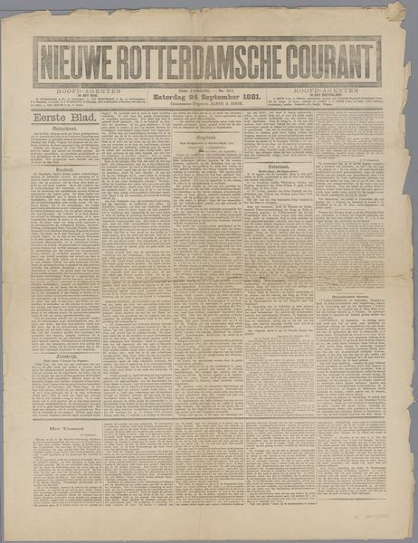 This is the *Nieuwe Rotterdamsche Courant*, printed on January 7th, 1937, by persons unknown at the newspaper of the same name. We see the headline announcing the marriage of Prince Bernhard. The entire object is, of course, made of paper. The paper is the message. It stands as a testament to industrial processes, and the rise of mass media as a shaper of public opinion. Every aspect, from the harvesting of wood pulp to the typesetting and printing, speaks to an increasingly mechanized world. It represents the labor of countless individuals, from journalists and editors to factory workers and distributors, all contributing to the production and dissemination of information. Newspapers like this one are so ubiquitous that we often overlook the sheer scale of their production. We read and discard, rarely considering the resources, labor, and energy that go into their creation. Examining this newspaper reminds us to consider the relationship between the news we consume and the complex industrial systems that make it possible. It encourages us to see everyday items as products of material culture, imbued with social and political significance.