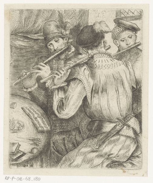 Jacques Dassonville created this tiny etching of a piper and child with flute sometime in the mid-17th century. Etching is an indirect process. The artist would have covered a metal plate with a waxy ground, then scratched away lines to expose the metal. Acid then bites into these exposed lines, creating the image, which is then printed. Look closely, and you’ll see how Dassonville's hand guided the etching needle, creating a network of lines, cross-hatching, and dots. The rough and ready aesthetic feels folksy, just like its subject. The scene feels immediate, as if the musicians were observed in a fleeting moment. Etchings like these were luxury commodities, produced through the skilled labor of draftspeople, printers, and publishers. They are intimately tied to the rise of mercantile capitalism, and a growing market for images. This artwork, therefore, asks us to think about the relationships between high and low, art and craft, and how these categories have played out across history.