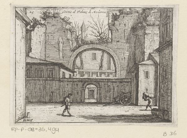 Editor: Here we have Jean Théodore Joseph Linnig’s "Vierschaar van Antwerpen," created around 1845. It appears to be a pencil drawing, and the style has an old-fashioned, almost documentary feel. What do you see in this piece beyond a simple architectural study? Curator: Beyond the depiction of the Antwerp Vierschaar, which was a site of justice, I see a powerful commentary on social structures and access to justice. Look at the barred windows and imposing architecture. Who do you think this building was designed to intimidate? Editor: I suppose those accused of crimes? It certainly isn’t welcoming. Curator: Exactly. Consider the placement of the mother and child in the foreground. Does their presence alter your interpretation of the building's significance? Does the small dog? Editor: I hadn't really noticed them initially, but now they feel…vulnerable, juxtaposed against this imposing structure. Maybe they’re meant to represent those most vulnerable to the legal system. Curator: Precisely. Linnig is prompting us to think critically about who the justice system serves and protects and who it marginalizes. It also prompts consideration of social support and equality during the mid-19th century. Does the setting itself, devoid of foliage or any soft lines, suggest anything to you? Editor: Yes, it highlights the harsh, unyielding nature of the legal environment. So, it's more than just a historical record, it’s a form of social critique. I hadn't considered that. Curator: Indeed. By examining art within its socio-political framework, we gain insight into the artist’s engagement with broader societal concerns and perhaps even a call for reform. Editor: I’ll never look at architectural drawings the same way again! Curator: Hopefully! It’s crucial to remember the visual arts have always had a very important contribution to understanding gender and society.