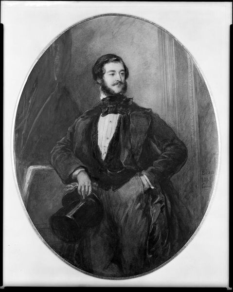 Josef Kriehuber made this lithograph of Baron Carl von Ghega, the Austrian railway engineer. Lithography is a printmaking process using a stone or metal plate with a smooth surface. The image is applied with a greasy substance, and then the plate is treated so that only the drawing retains ink, allowing it to be printed. The choice of lithography is significant. It allowed for relatively quick and inexpensive reproduction, making images like this accessible to a wider audience. In this context, it speaks to the industrial revolution and the rise of a new kind of hero: the engineer. Ghega, the man who designed the Semmering Railway, was a celebrity of his time. Kriehuber’s print captures Ghega’s self-assuredness. The lithographic technique, with its subtle gradations of tone, lends a sense of realism to the portrait. This print isn't just a picture; it's a document of a changing world. It reflects the growing importance of industry, technology, and the individuals who drove these transformations.