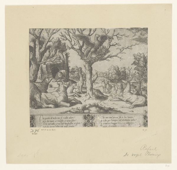 Editor: So, this is "Grimbert Gives Reinaert a Beating and Reinaert Attacks a Rooster," a watercolor drawing from around 1866 to 1939, by Bernard Willem Wierink, currently held at the Rijksmuseum. I am really struck by the narrative elements within the frame and how the artist chose to depict a well known storyline through vignettes. What's your take on it? Curator: It's interesting to see this rendered in watercolor. We are drawn to a historical moment within popular imagination. Narrative art like this thrived during a period of rising literacy and accessible print media. Think about the cultural function of these accessible images - What purpose do you think these images served for the rising middle class? Editor: Well, visually telling stories certainly makes them more accessible. Almost like early graphic novels! Curator: Exactly. And this one borrows from folk traditions, reminding viewers of shared cultural narratives. Note how Wierink frames each episode, making them self-contained and almost precious. That careful framing suggests the high value placed on folklore at the time, an idealized version of cultural identity and maybe even political ideology. The placement in a museum solidifies its value and accessibility in the public sphere. Editor: I didn’t consider the political aspects. The way the museum frames it really does influence my perspective. Curator: How so? Editor: It becomes a part of our cultural heritage, something officially sanctioned and worthy of preservation and display, a national treasure of sorts. Curator: Precisely. And those choices say a lot about the prevailing ideologies. Now I'm curious about how the narrative functions through this medium. Editor: Right, looking at this drawing I would've considered it only as the artwork itself, and not so much within the broader historical, cultural, and social contexts in which art is consumed and displayed. Thanks for helping me dig a bit deeper!