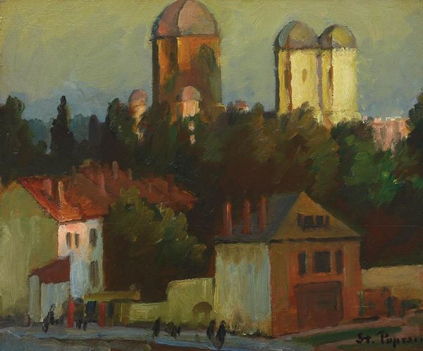 Józef Pankiewicz created this landscape with a church and cypresses around 1914, using oil on canvas. The thick application of paint is immediately apparent. You can see how Pankiewicz loaded his brush, allowing the material qualities of the oil paint to define the forms. Look closely, and you'll notice the texture isn't uniform. The artist varied his approach, building up layers in some areas, like the foliage, while leaving others relatively smooth, particularly in the sky. This wasn't just about representation; it was a conscious decision to engage with the materiality of paint itself. Pankiewicz’s technique reflects a broader shift in the art world, where the act of painting and the properties of the medium became central themes, rather than solely using paint to depict a scene. This approach elevated the status of the artist's craft, aligning it with other forms of skilled making and design. By understanding the artist's engagement with the medium, we gain a deeper appreciation for the work's aesthetic and conceptual complexity.