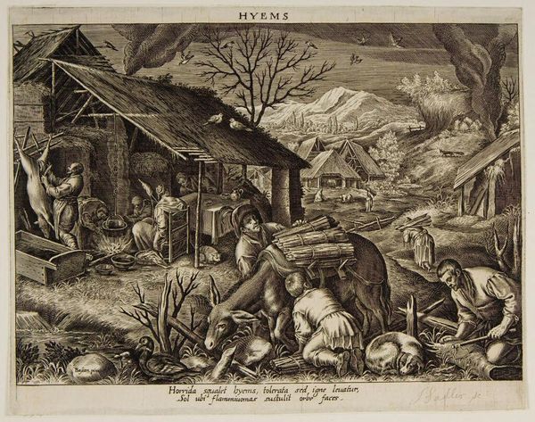 Editor: This is Pieter Bruegel the Elder's "Greed," an engraving from 1560. It's teeming with bizarre, almost grotesque figures. There's so much happening; it’s a little overwhelming, actually. What do you see when you look at this piece? Curator: Initially, the eye is ensnared by the complex interplay of line. Observe the artist's technical virtuosity in creating depth and texture. The density of the hatching, the delicate gradations of tone… how do these elements contribute to the overall sense of… chaos? Editor: Definitely chaotic! I’m also struck by the contrast between the detail in the foreground, where all the greedy actions are happening, and the almost fantastical landscape in the background. Does that contrast have a particular significance? Curator: The opposition you note is pertinent. Consider how the spatial arrangement functions as a compositional device. The foreground is a plane of concentrated activity, whilst the background operates on an entirely different level. Note also the tonal shifts from fore- to background. How do these techniques lead your reading of the depicted avarice? Editor: It seems like the busyness and detail draw you in to focus on the ugliness of greed, while the fantastical background shows the wider consequences, like societal decay and a sort of distorted reality. Curator: Precisely. The landscape is not merely a backdrop, but a symbolic field. Every formal element - line, tone, composition – are mobilized to underscore the thematic core. So, what can we take away from analyzing the technical composition of the engraving? Editor: I see how focusing on the formal elements really enhances the reading of the overall meaning. It’s not just about the figures, but how the techniques really drive home the message.