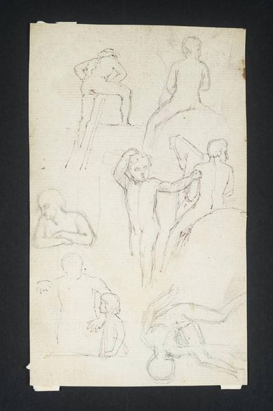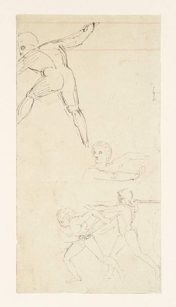 Editor: This is Washington Allston's "Four Male Figures for 'The Angel Releasing Saint Peter.'" The figures, rendered in delicate lines, seem to writhe in states of anguish and supplication. What can you tell me about the social or political contexts influencing this work? Curator: Allston, deeply affected by his time in Europe, wrestled with the role of art in a rapidly changing world. He saw the artist as a moral and spiritual guide. Consider the subject matter: a saint's liberation. How might that have resonated with early 19th-century audiences grappling with issues of freedom and authority? Editor: That's fascinating! So, these aren't just figures in poses, but reflections of the era’s anxieties and hopes? Curator: Precisely. Allston uses religious narrative to subtly engage with contemporary debates about individual liberty and the power of institutions. This shifts our view from simple aesthetics to active social commentary. Editor: I see it now—it's like he's embedding the political within the religious! Thanks for that perspective.