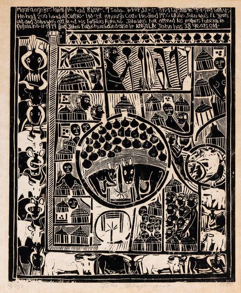 John Muafangejo's linocut, *Adam and Eve*, presents us with a fascinating blend of biblical narrative and indigenous African symbolism. At its heart, the figures of Adam and Eve stand within a circle, surrounded by the lush flora and fauna of the Garden of Eden. The serpent, a classic symbol of temptation and knowledge, winds its way between them, but here it appears almost as a mediator, a figure of transformation rather than pure evil. This echoes ancient symbols of snakes as healers, connecting to earth energies. Above, we see faces reminiscent of ancestral figures, observing this primal scene. The image resonates with similar themes found in other creation myths across cultures. The psychological weight of this scene—the awakening of consciousness, the loss of innocence—is a powerful force engaging viewers on a deep, subconscious level. This moment has been endlessly reinterpreted, each time reflecting the cultural anxieties and aspirations of the age. This biblical story takes on a unique resonance in a modern African context.