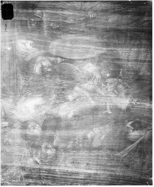 Editor: This is an X-radiograph of "The Rape of Europa" after Veronese, with no date specified. The stark greyscale gives an eerie feel. What do you make of seeing the unseen in such a controversial piece? Curator: The X-radiograph unveils layers of history and power dynamics embedded within the artwork itself. Consider the title: "Rape of Europa." How does seeing the underpainting or the artist's revisions complicate or challenge our understanding of this narrative of sexual violence? Editor: It makes me think about the artist's process and how intention and interpretation can be very different. Curator: Precisely. And it invites us to question the societal values that normalize such narratives. It's a potent reminder of the intersection of art, power, and gender. Editor: This gives me so much to think about. Thanks! Curator: My pleasure. Keep questioning!