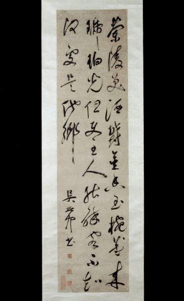 This hanging scroll, "The Rainy Season," was created by Gojo Tametaka in the early 16th century, using ink and color on paper. Look closely, and you'll see how the materials themselves contribute to the artwork's meaning. The choice of paper as a ground is significant, as it is a readily available material, a common surface for calligraphy and painting. The ink, too, is a material of everyday communication, transformed here into an artistic medium. The artist has applied ink and color washes in a way that mimics the effects of rain. The texture of the paper is visible, adding depth to the composition, evoking a sense of dampness and atmosphere. The brushwork, or the way the ink is applied, is crucial, too. The controlled strokes showcase the artist's skill and reflect the cultural significance of calligraphy in Japanese society. By emphasizing the beauty of natural materials and the skilled hand of the artist, Tametaka elevates the ordinary to the realm of art, reminding us to appreciate the simple beauty of the world around us.