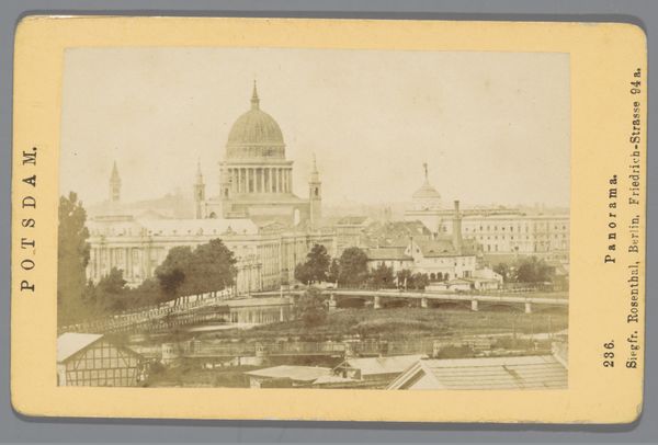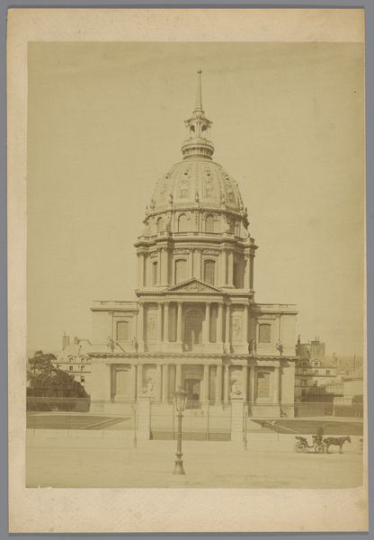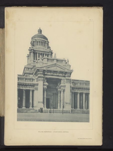 Curator: Let’s take a look at a photograph from “The Madame B Album,” created around the 1870s in France. It’s an albumen print, a silver print—primarily a collection of cityscapes and portraits, it resides here at the Art Institute of Chicago. Editor: My initial impression is one of immense scale. Even in this small photographic print, the building commands attention. The texture feels incredibly smooth and uniform; you almost want to touch it. Curator: It's an excellent example of realism, showing us not only what's there but also how photography was used to document architectural achievement and French society in this era. The "Album" as a whole suggests a curated vision of progress and national identity. Editor: Precisely, it's tempting to think about the labor behind this kind of construction; each carved stone, each perfectly aligned column, the massive consumption of material involved, but also, and importantly, the amount of precise and dedicated artisanal work put into creating the final photographic print. It reflects both grand ambition and an acute attention to detail. Curator: I think it's also significant to note that photographs, in the 19th century, began to democratize art viewing. Photographic albums allowed greater audiences access to iconic architectural works and portraits than ever before. But that very democratizing force was still curated, still representing a certain, often privileged, viewpoint. Editor: True. And that curation highlights the role of materiality in consumption; the paper quality, the binding of the album itself—these become indicators of social status and taste, shaping the viewer’s understanding of not just the subject matter but the cultural capital associated with owning such an object. Curator: The album speaks to both the ambition of 19th-century France, as it re-constructed itself, and also the democratizing potential inherent in accessible, if carefully-controlled, image production and dissemination. Editor: Indeed. Seeing the city’s grandeur mediated through both its physical materials and the careful material presentation of photographs provokes questions about who the city is really built for, and who gets to enjoy it as image and lived experience.