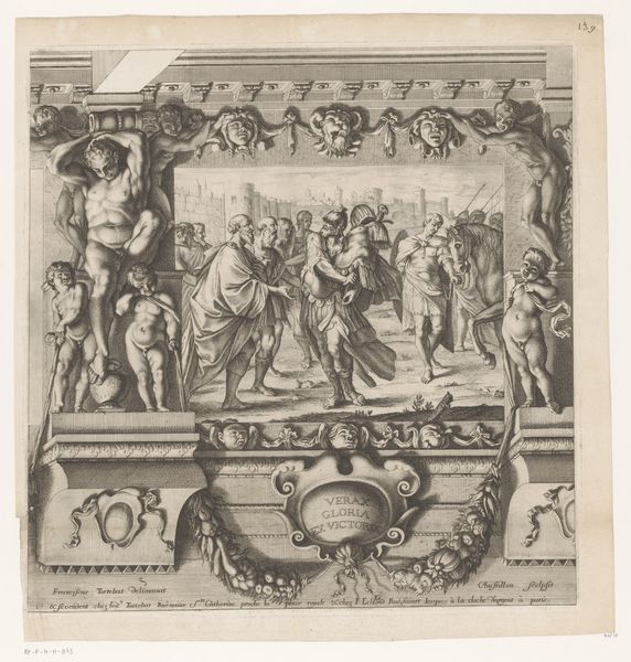 Editor: We're looking at "Flagellation of Christ in an ornate Frame," a print, engraving, or drawing, from the Italian Renaissance. It's dated to between 1537 and 1550 and currently resides at the Met. It's a fairly small-scale piece and quite striking. What is your perspective on this piece? Curator: Well, right off the bat, what grabs me is the, shall we say, rather... energetic composition? I mean, there's Christ, poor chap, in a tight spot, smack in the middle of all that swirling movement. It is as though Christ is trapped in an architectural nightmare. Look closely; is that architectural space logical? How do those figures relate? This is less about accurate historical depiction and more about evoking emotional drama, wouldn't you agree? Editor: Yes, it’s incredibly chaotic. Almost theatrical. The architecture is fascinating. Did this style frame the images from this time often? Curator: Frames like this became very popular, almost trendy, ways to “present” prints in a book, as independent sheets to be collected, or even pasted onto walls. The image within is harrowing. Think of the artist almost playfully teasing our desire for beauty, and harmony, but delivers such cruelty. But tell me, does this image "move" you? Editor: Absolutely. The artist cleverly juxtaposes serenity and brutality. The engraving style really makes it an overwhelming image to unpack. I am surprised that such detail can be made from such a small medium. Curator: It is almost paradoxical, right? And isn't that the essence of art itself - wrestling with paradox, making sense of the senseless? Editor: It really is. I learned so much; it gave me much to think about regarding historical framing of the events and how it juxtaposes the image and real feeling that they portray. Curator: Agreed. A fruitful paradox is revealed today. I feel newly energized after viewing it with fresh eyes.