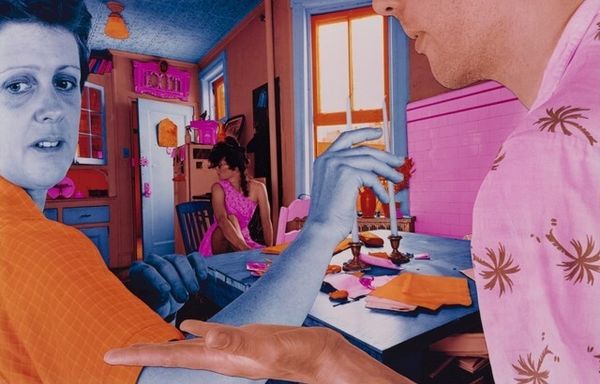 This is Valerio Adami’s 'Hotel Chelsea Bathroom', and it's like he’s dissected a mundane scene with a scalpel of graphic wit. The colours are dialed up, almost cartoonish, but they give the room a strange, unsettling vibe. Look at how flat everything is. Adami isn't trying to trick you into thinking this is real. Instead, it’s about reducing the world to shapes, colours, and outlines. The black outlines are so confident and unwavering. They define everything, leaving no room for doubt. But what do they define? Is it clarity, or confinement? The tiles by the bath, a grid of cold blue-violet, each perfectly placed, yet the curtain, a swathe of black, threatening to swallow the bather whole. Adami reminds me a little bit of David Hockney, in that they both find a surreal poetry in the everyday. It's the kind of image that makes you question what you think you know about seeing.