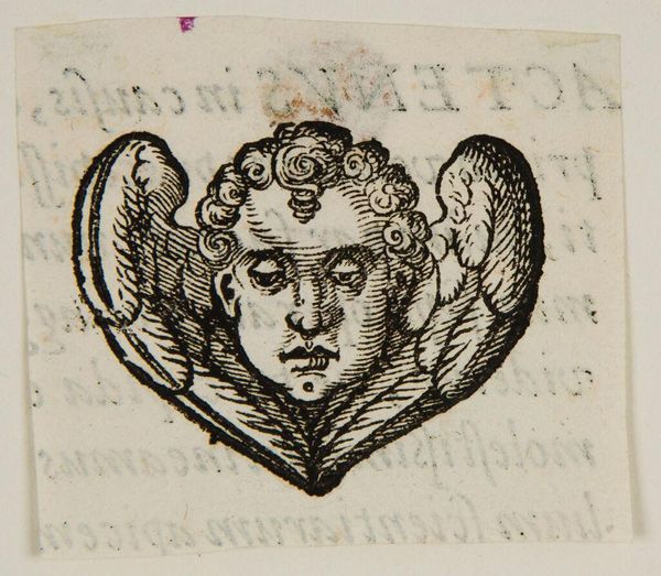 Curator: Here we have "Cut XXI," an anonymous artwork from the Harvard Art Museums. It's a small woodcut, seemingly a printer's ornament. Editor: Oh, I'm immediately drawn to that central face—it's serene, almost dreamlike, surrounded by these wild, swirling flourishes. Curator: Indeed. The linear quality suggests mass production; these cuts were used to decorate books and other printed material, items of consumption. Editor: So, it's functional art—a workhorse of the printing press, but with a delicate beauty. That thought kind of warms my heart, you know? Curator: It emphasizes the labor involved in early printmaking and the dissemination of knowledge, connecting art to broader social practices. Editor: Absolutely. It makes you consider all the unseen hands involved, the collaborative spirit of artmaking and storytelling. I think it's a fascinating piece. Curator: I agree. It gives us a glimpse into the materiality of the printing process, but also its capacity to embellish and shape communication.