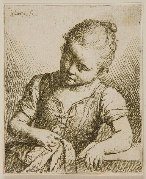 Curator: Johann Gottlieb Glume’s "Bust of a Boy" at the Harvard Art Museums, rendered in delicate lines, captures a child engrossed in a book. Editor: There’s something melancholy in his gaze, isn’t there? It’s like he’s carrying the weight of the world in those young eyes. Curator: I see that. Perhaps it's the formal attire, suggesting a societal expectation imposed early on. Or maybe it's how literacy was a privilege, a marker of class, shaping identity. Editor: Right, it makes you wonder about the boy’s future prospects, predetermined by this very act of reading. He looks trapped almost, like a bird in a gilded cage. Curator: That tension is palpable, a blend of hope and constraint, subtly conveyed through Glume's artistry. Art reflecting life, or life shaping art? Editor: Maybe it's both, forever intertwined in how we see and are seen. Curator: Exactly.