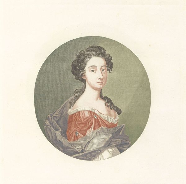 Curator: This is an engraving from 1827, “Cornelia leest een boek,” or "Cornelia Reading a Book", by Elisabeth Barbara Schmetterling. It's got this incredibly delicate, old engraving style to it. What catches your eye first? Editor: It feels…contained. Like a cameo or a pressed flower. The oval frames her, and that collar almost cages her face. There's a stillness there. I wonder what she's reading and whether the book might hold some secrets she relates to? Curator: Secrets, maybe, or simply an escape? Given the time period, accessing books might have felt like opening doors to worlds that were otherwise closed off. Schmetterling, as a woman artist, would have been acutely aware of such restrictions and access. Editor: Precisely! And think about the performance of femininity in that era. Cornelia’s quiet act of reading subverts that expectation of a demure woman through the cultivation of an inner life of self-determined contemplation. Do you see her expression? She's not gazing out, inviting a male gaze; she's looking down at the page. Curator: I love that shift of focus. It feels almost rebellious, doesn't it? Especially because we are peering in on her private moment of learning and leisure. It's rendered with such delicacy too—the light pencil work, almost like whispers on the page, and she is completely enveloped in her reading material. Editor: And while the style—this Neoclassical formality—seems almost austere at first glance, the very fact that she’s depicted *reading* challenges the superficiality so often imposed on women. Literature becomes a tool, a weapon. Curator: That's so astute. You've made me see it differently now. Perhaps that's why she is forever enshrined in this oval frame. Editor: To me, Elisabeth Barbara Schmetterling offers not just a portrait, but a subtle manifesto about women, knowledge and power. Curator: It truly makes one contemplate that stillness and realize just how potent it can be. Thanks for that insight!