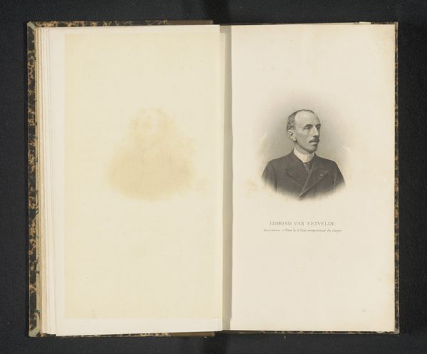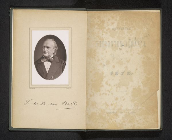 Editor: This is a photographic reproduction of a drawn portrait of Bernardus Ledeboer, created in 1877. What strikes me is how intimate it feels, like stumbling upon a page in someone's personal sketchbook. What do you see in this work? Curator: Well, let’s consider the material conditions first. It's a reproduction, so we're already dealing with layers of removal from the "original" artistic gesture. The choice of paper, its texture, the way it's been aged – these elements weren’t simply chosen; they reflect a certain access to resources, a specific set of material practices related to image circulation in 1877. Editor: So, the material implies a certain socio-economic background for both the artist and, presumably, the person who owned this sketchbook? Curator: Precisely! And think about the labour involved. Making paper by hand was still practiced, though increasingly rare given industrial production, this may suggest either the paper was handmade. Or even made to appear such. The choice and application hold meaning within its context, the time of its making, it might attempt to present the depicted with further gravitas and history than might actually exist. Editor: That's fascinating! I hadn’t thought about how the paper itself tells a story about production and consumption. Curator: It all boils down to this: even what seems like a simple portrait is embedded in a complex web of material realities and social relationships. So it's less about 'who is he?', or even how 'well' the drawing is made but 'how did he become visible to us?', and, ultimately, what and how much does he own? Editor: I see what you mean. It completely reframes my understanding of the piece. Thanks. Curator: And thank you! Paying attention to these material details gives you a language to describe its historical conditions that brought it to you today!