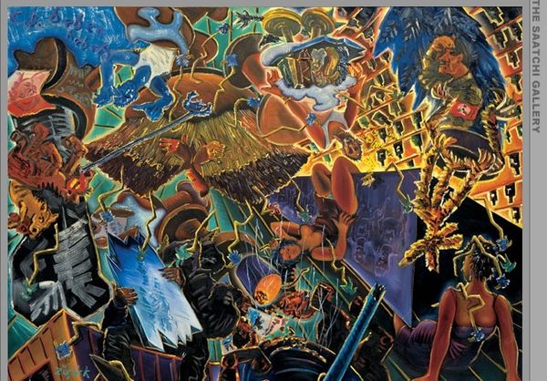 Editor: Here we have an untitled piece by Mahmoud Farshchian. It's awash with so much detail; it feels almost overwhelming at first glance. How would you even begin to describe something so intricate? Curator: Well, overwhelm can be a doorway, can’t it? I think this invites us into a world teeming with life – literally. A landscape, but not as we know it. A mythical coming together. Do you see how the figures, the humans and the animals, are almost lifted up? As if they’re all reaching for something…divine. It reminds me of those whirling dervishes – the ones lost in ecstatic dance, spiraling towards…connection. It’s Farshchian’s mastery, you see, that weaves all these strands – the Persian miniature tradition, the mystical currents of Sufism. He’s not just painting pretty pictures, he's… conjuring a spiritual encounter, wouldn’t you say? Editor: It does feel incredibly spiritual. The swirling colors and forms create a sense of movement, of ascension. Are there specific stories or figures from Islamic or Persian mythology being depicted here, or is it more of a symbolic representation? Curator: A delightful question! It flirts with representation, but for me, it dances away just when you try to grasp it. What Farshchian offers, I think, isn't a direct retelling, but more of an echo – a feeling. He uses those archetypal figures, yes – the wise old man, the creatures of the natural world – but almost as tools. To nudge us toward something deeper, more internal. Editor: So, less about understanding the precise narrative and more about feeling the…resonance? Curator: Precisely! A painting like this, you see, isn’t just *for* looking *at*; it's *for* looking *within*. Maybe it's about remembering the unity we’ve somehow forgotten. Editor: That’s a perspective shift! Thanks, I see much more to the piece now than just a dizzying array of forms. Curator: My pleasure! It always delights me to find someone keen on art.