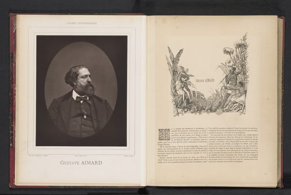 This photograph of Georges Eugène Benjamin Clemenceau was taken by Etienne Carjat, sometime in the mid-19th century. The portrait is striking for its formal composition and the interplay of light and shadow, capturing Clemenceau in an oval frame set against the crisp geometry of the book. Notice how the oval cameo creates a sense of intimacy, while the contrasting rectilinear border suggests a calculated distance, drawing attention to the constructed nature of the image. Carjat employs a tight crop and minimal depth of field, which intensifies the viewer's focus on Clemenceau's face. The tonal range, from the deep blacks of the background to the subtle gradations of the skin, creates a compelling visual tension. Here, photography begins to assert itself as an art form capable of capturing not just likeness but also the complex interplay between representation and reality. The photograph’s structured composition prompts us to consider how images are never neutral, but always products of specific framing choices. It is a powerful reflection on the act of seeing and being seen.