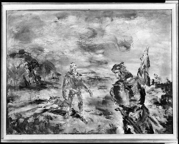 Georg Philipp Rugendas created this piece of art, Cavalry Skirmish, with oil on canvas. At first glance, the composition of this painting pulls you into the heart of a chaotic scene, a skirmish, with the dynamic interplay between the dark, shadowy figures and the lighter, smoky background. Notice how Rugendas uses the texture of the brushstrokes to add to the turmoil and energy of the battle. Now, let's consider how these formal elements contribute to the artwork's meaning. The blurred lines and the lack of clear definition create a sense of unease, reflecting the unpredictable nature of conflict. The contrast between light and shadow emphasizes the drama, while the layering of figures conveys a sense of depth and movement. We see a semiotic system of signs, where horses may represent power, and weapons symbolize aggression. The painting challenges traditional depictions of heroism by focusing on the chaos and confusion of battle. It encourages us to look beyond the surface and consider the broader implications of war. Remember, the beauty of art lies in its ability to evolve with each interpretation.