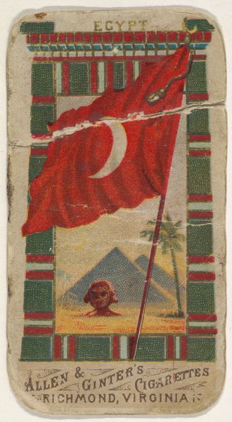 This small lithograph was printed around 1900 by W. Duke, Sons & Co. as a cigarette card, a paper collectable inserted to stiffen packaging and entice consumers. The card features the Sphinx and other patriotic symbols. The printing process would have involved making a series of lithographic stones, one for each color, and layering these in precise registration. This was skilled work, but in the context of mass-production, it’s geared towards speed and uniformity. Consider how the bold lines and flat colors reflect the industrial process. It's quite different than a unique work of art. The text "Honest Long Cut" reveals the card's true purpose: advertising. While seemingly benign, these cards promoted tobacco consumption and linked it to notions of national identity, history, and even art. This raises important questions about labor, consumerism, and how images circulate within a capitalist system. It reminds us that even seemingly small, mass-produced objects can carry significant cultural weight.