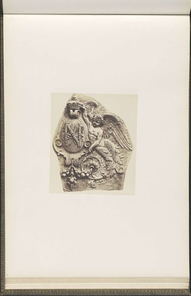 This photograph by Edouard Baldus captures Louis Léopold Chambard’s plaster model, "La Force," destined for the Palais du Louvre. The monochrome image features a cluster of figures perched atop a lion, their forms rendered in sharp detail against a neutral backdrop. The composition rises vertically, drawing the eye upwards through the complex interplay of textures and shapes. Baldus’s photograph does more than merely document; it transforms the sculpture into a study of light and shadow, accentuating the monumentality of "La Force" and its symbolic weight. Consider how the stark contrasts and careful framing invite us to contemplate the relationship between classical forms and the emerging photographic medium. Baldus uses light to sculpt form, mirroring the sculptor's own concerns with volume and space. This interplay emphasizes the translation of physical presence into a visual experience. The photograph stands as a testament to how each medium—sculpture and photography—contributes to interpreting cultural ideals through form.