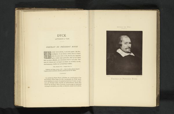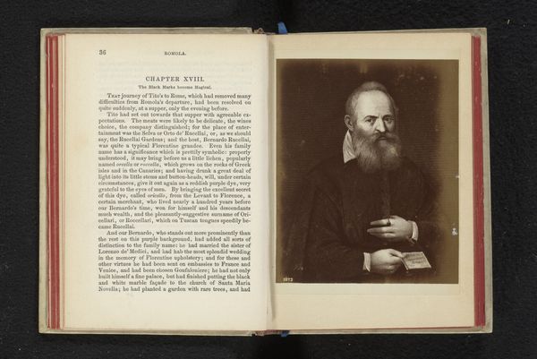 Curator: Here we have an open book featuring a portrait of The Right Honorable Sir H. Bartle E. Frere. Though created before 1893, its author remains anonymous. Editor: Immediately striking is the tonal range. The aged paper provides a warm contrast to the sharp monochrome portrait on the facing page. It feels stately and quite formal. Curator: Sir Bartle Frere was a controversial figure, a colonial administrator in India and South Africa. His legacy is deeply intertwined with British imperialism and its often devastating impact on indigenous populations. We can't separate the image from its historical context of power, exploitation, and cultural erasure. Editor: Certainly. But if we focus on the visual elements, the artist captures the texture of his garments quite effectively. The stark white typeface beneath, labeling Frere's name and titles, feels rather declarative, asserting authority and importance. Curator: It does. And that typeface, those thick, deliberate letters, remind us of the power of the written word to construct and disseminate narratives. Was this image intended to legitimize Frere's rule? To present a civilized and respectable face for a project built on oppression? Editor: One could certainly see it that way. Note the way the columned text mirrors the formal portrait across from it, giving the impression of two distinct elements that complement one another within a carefully framed, visual plane. It speaks to careful composition, even as the meaning continues to stir conflict. Curator: Precisely. Even in the fading type, on what is visibly homemade, or at least aged paper, we see the endurance of colonial narratives. Looking at Frere’s posture—upright, hand tucked into his jacket—it feels staged to convey power. How does it challenge us today? How do we unpack its role in shaping our understanding of history and representation? Editor: Indeed. By engaging with this piece, we can explore the interplay of intention and reception, not just with respect to its historical era, but to this very moment. Curator: A truly important consideration, for those eager to engage more thoughtfully with the past.