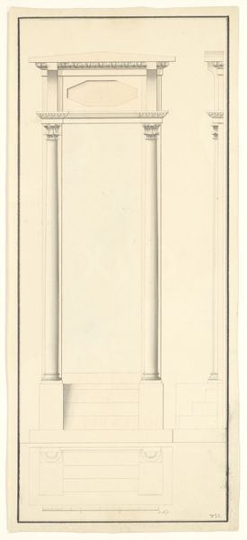 Here we see Carl Wilhelm Marckwort’s design for a corner cabinet, a drawing rendered with precision and understated elegance. The composition is divided into three distinct sections, each stacked vertically: The cubic top, the broader midsection and the triangular base. The restrained palette of soft blacks and whites emphasizes the architectural form. The use of geometric forms evokes a sense of order and classical harmony. The cabinet's functionality is subordinated to the aesthetic arrangement of shapes, questioning the utilitarian design. What is normally the function, is now pure architectural form, reflecting a fascination with structure and design. The drawing is a blueprint and a statement on form and space. Its appeal lies in its capacity to transform a common object into a study of pure geometrical beauty.
