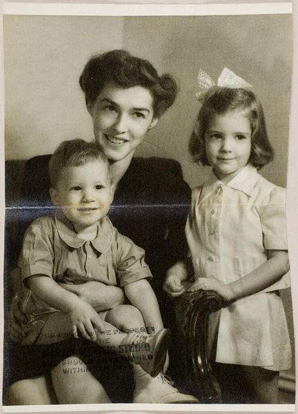 Curator: Oh, my heart, look at this vintage photograph! It's an untitled double portrait by Martin Schweig. Two young sisters, perched on a box marked "Proof." Editor: It's so evocative! There's something about the monochrome that pulls you in, isn’t it? A study in innocence and sisterhood... but also constraint. Curator: Constraint? The elder sister looks so proper, almost doll-like in her floral dress. The baby, though, is pure, unadulterated joy. Editor: Right, but that's exactly my point. These studio portraits were about constructing an image, a performance of childhood. What were the social expectations of girls at that time? Curator: True. The studio setting itself is a stage. Schweig captures their presence, their stillness, and also the cultural ideals they are framed within. Editor: Precisely. It makes you wonder about the unspoken narratives behind these sweet faces. Curator: It's like the photo is a captured moment of stillness, but it sets the stage for infinite stories. Editor: Yes, art, at its core, reflects our own history and aspirations.