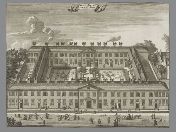 Pieter Hendricksz. Schut made this print of the Amsterdam Stock Exchange after 1668, using etching and engraving techniques. These processes, rooted in skilled handcraft, allowed for the detailed depiction of architectural space and human activity, yet also enabled mass production. Notice how the density of lines creates depth and texture, giving the building a palpable presence. Schut’s technique reflects the era’s increasing commercial activity, mirroring the industriousness within the Exchange itself. The printmaking processes - engraving and etching - required a division of labor, aligning with the era’s expanding capitalist structures. The sharp lines used to depict the building and bustling figures denote the value of hard work, and the print’s inherent reproducibility speaks to a growing culture of consumption and the democratization of images. Ultimately, this print demonstrates how an artwork’s material and making processes are deeply interwoven with broader economic and social shifts, blurring lines between fine art and commercial production.