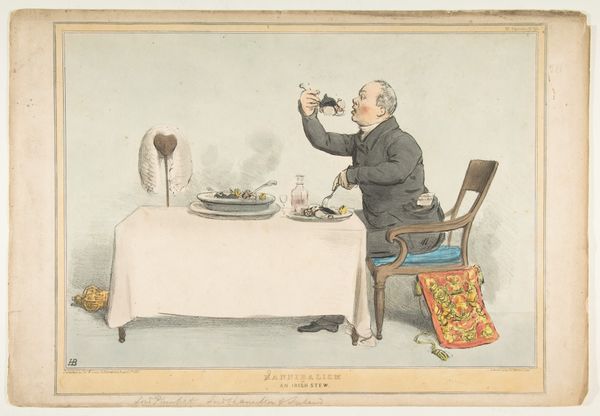 Honoré Daumier created this lithograph, "Le bon morceau", which translates to "The good piece," to critique the bourgeoisie in 19th-century France. Daumier was a master of social satire, using caricature to expose the vanity and greed of the middle class under the reign of Louis-Philippe. The figure in this print, identified as Mr. Fulchot, embodies gluttony and self-importance. The artist exaggerates his facial features to make him appear grotesque. The tight grip on his utensils and the intense focus on the food suggest an unhealthy obsession with material pleasures. Daumier’s work often appeared in popular journals like "Le Charivari," making his social commentary accessible to a broad audience. This print reflects the growing social tensions between the working class and the increasingly powerful bourgeoisie. To fully appreciate Daumier's critique, one might delve into periodicals of the time, studies of class structure, and analyses of visual culture in France. By understanding the social context, we see how Daumier used art as a tool for social critique.