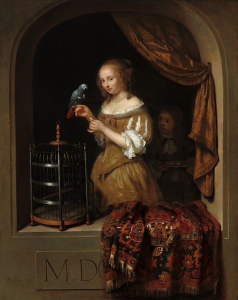 Editor: This is Maarten van Heemskerck's "Portrait of a Woman, possibly Anne Codde," painted in 1529, using oil. The woman is shown spinning, and I am struck by her somewhat melancholy expression. How do you interpret this work? Curator: I see this portrait as a window into the complex social fabric of the Northern Renaissance. It raises compelling questions about the role of women, particularly within the domestic sphere. This seemingly simple scene of a woman spinning holds within it the dynamics of labor, class, and gender expectations. Editor: Can you expand on that a little? Curator: Consider the act of spinning itself. It’s not just a domestic task; it is also about women’s economic contribution in this historical context. Who was Anne Codde? Was she of a particular social class? Did the action of spinning represent independence or restriction for her? The portrait operates on multiple levels: it’s a record, but also a negotiation of identity. What is emphasized, and what is left out? How does the woman meet our gaze and how can we use cultural and philosophical lenses to analyze these elements of visuality? Editor: That's fascinating! So you are suggesting it might be making a commentary, through her depiction, on societal norms around women and their economic contribution? Curator: Precisely. Art from this period often encodes unspoken truths. To truly engage with this work, we need to unpack the symbols and understand how gender, labor, and class intersect in 16th-century Northern Europe. It’s also worth investigating what spinning may have meant culturally; this was an era of rapid change with the rise of capitalism. Were women being edged out? Were there guild wars around textile creation? Editor: That is incredibly insightful. I hadn't considered all of those possible layers before! It definitely gives me a lot to think about regarding this painting. Curator: That's the beauty of art history. We start with a visual object and journey through layers of history, theory, and social context, revealing new ways of seeing.