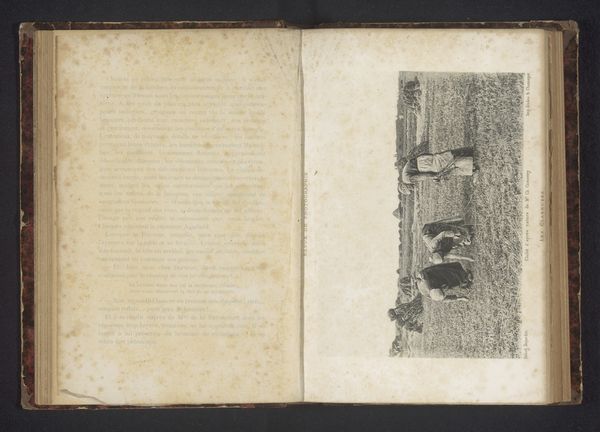 Curator: This is a photoreproduction predating 1865, "Jerusalem, Via Dolorosa," after the painting by Conway Shipley, rendered with ink, colored pencil, and watercolor. Editor: Its stark tonal quality immediately strikes me. The aged paper, marked with blemishes and faded impressions, gives the scene a palpable weight. It almost feels like holding a fragment of time. Curator: Observe how the photographer utilizes the stark contrast between light and shadow to create depth within the composition. The perspective draws the eye towards a distant archway. Consider the meticulous detail used in representing the architectural structure; note the arrangement of shapes, which lend structural integrity. Editor: It makes me think about the logistics: transporting heavy photographic equipment to Jerusalem in that era, the complex chemical processes involved in creating this reproduction...what level of craft was required, who were the people behind it and what narratives about this place were they aiming to construct or reproduce? Curator: A potent tension resides in the flatness of the photograph, versus the artist's intended evocation of deep space. Semiotically, we must recognize the dual representation occurring; a photoreproduction mediating Shipley's initial painterly expression, an indexical trace layered upon representational form. Editor: Absolutely. And considering the cultural context of Jerusalem then, the act of capturing and disseminating such images undoubtedly held implications. The materiality of the aged print carries its own historical burden, evoking colonialism, religious fascination, and the burgeoning tourist industry that developed in relation to the Holy Land. Curator: Your point underscores the rich strata of interpretations this piece allows. By understanding its formal structures and inherent pictorial qualities, it provides us to not only examine artistic intents, but the history of artistic reproduction too. Editor: Indeed. Seeing art this way--not just for what it represents but for its complex modes of production and consumption--allows for a fuller understanding of how images construct historical memory.