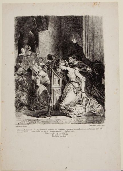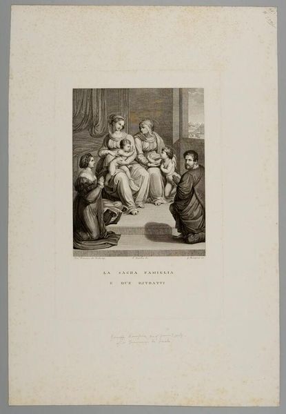 Editor: Here we have Jean Baptiste Louis Massard's "Saint Paul Healing the Sick," a print that powerfully captures a moment of miraculous intervention. It’s just amazing. What do you see in this piece? Curator: For me, it's the potent contrast. Look at the serene authority of the seated figure versus the frantic suffering below. It makes me wonder about the artist’s intention. Is it about power, compassion, or maybe even the spectacle of faith? Editor: That's a perspective I hadn't considered! Curator: Sometimes, art whispers different stories depending on who’s listening. Editor: Absolutely, I'm definitely going to remember that. Thanks!