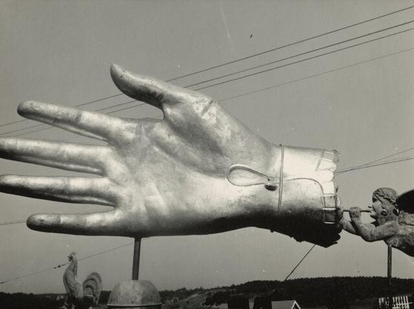 Tina Modotti made this gelatin silver print, titled "Hands of the Puppeteer," using photography, a medium that was then still relatively new. The image portrays a pair of hands skillfully manipulating the strings and control bar of a marionette puppet. What strikes me is how Modotti uses the inherent qualities of photography to capture this moment. The stark contrast and sharp focus emphasize the texture of the puppeteer's skin, the grain of the wooden control, and the delicate tension of the strings. The photograph isn’t just a document; it’s a statement about labor and control. Puppetry itself is an ancient form of craft and entertainment, relying on the puppeteer's skill to bring inanimate objects to life. Modotti seems to be asking us to consider the labor involved not only in the making of art, but in its manipulation and control, raising important questions about the relationship between the artist, the artwork, and the audience. It reminds us that even in art, someone is always pulling the strings.