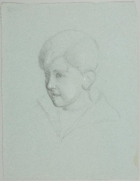 Curator: Here we have Pierre-Paul Prud'hon's "Head of a Young Boy," a pencil drawing believed to have been created sometime between 1770 and 1823. Editor: It's remarkable, isn't it? The tenderness in the boy's expression, almost melancholy. And the scale is deceptively intimate; one is drawn to the details in the face. Curator: Prud'hon's facility with the pencil is extraordinary. If you look closely, you'll see the hatching and stippling used to create tonal variations. It's all about technique. The paper itself, its weave and texture, becomes part of the finished work. Consider the materials available and the conditions of their creation and use. Editor: I’m struck by the artist’s careful manipulation of light and shadow, creating a compelling emotional landscape on this young boy's face. The boy's gaze seems to invite a narrative interpretation. Curator: What's compelling, I think, is considering this in light of its creation period. This Neoclassical artwork and how that informed artistic labour. The production of materials, paper and pencil, become key aspects of its analysis. Editor: But how does this intense study function within that Neoclassical framework? The very deliberate staging, and use of sfumato gives the image a timeless, idealized quality, a reference to classical sculpture, yet humanized. Curator: But think about the paper's creation and distribution in society! Access to resources like high-quality paper indicates socioeconomic stratification that necessarily affects who the subject is, what sort of clothes they may be wearing off-frame, their station. That material aspect reveals class dimensions of Neoclassical works beyond the apparent stylistic qualities. Editor: Fascinating considerations. But as a study in pure form, the artwork exemplifies balance between restraint and depth. Curator: Looking closely, we appreciate not just a portrait but how labour shaped that very portrayal. Editor: Agreed. Viewing this, you feel as though we've caught a glimpse into a soul. The boy will forever stay with me.
