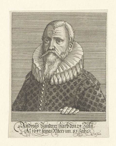 Editor: We're looking at "Portret van Johannes Gisenius," a 1621 engraving by Jacob van der Heyden. The detail is incredible; it's like staring into the soul of this rather serious looking man. What strikes you about this piece? Curator: Well, darling, the immediate gravity certainly captivates, doesn't it? I'm struck by the sheer concentration radiating from Johannes Gisenius. He feels monumental, despite being rendered in such a delicate medium. One can almost imagine him stepping out of the engraving, ready to impart some profound wisdom. Do you feel the weight of history bearing down, as I do? Editor: I do, especially knowing it’s from the Baroque period. He's holding what look like a book and some sort of tool… any thoughts on that? Curator: Precisely! The book whispers of scholarly pursuits, his profession; theology, philosophy and, intriguingly, polyglottery. And that tool... Perhaps it symbolizes the dissection of knowledge, a relentless pursuit of truth that was characteristic of intellectual thought during this period? It is as if his portrait were designed not just to represent, but to *inspire* devotion to education. I want you to imagine yourself among the volumes. What feelings bubble up in you? Editor: Curiosity, definitely. But also a bit of intimidation. All that intense study! Curator: My dear, that's exactly the point! Intimidation intertwined with yearning, that exquisite tension! Van der Heyden masterfully captures this spirit. It's a dance of light and shadow, both literal and metaphorical. He beckons and warns simultaneously. Editor: I see it now, the pull and the push. It really makes you think about the power of knowledge. Curator: Precisely! That, my dear, is what art does best—a beautiful mirror reflecting ourselves and those brilliant historical echoes, all the glorious absurdities and sublime pursuits of those gone before us.