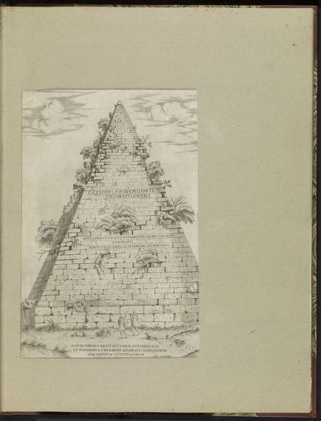 Editor: This is Giovanni Battista Piranesi's "Doorsnede van de Piramide van Cestius te Rome," created around 1756-1757. It’s an etching, showing a cross-section and elevation of the pyramid. It's so precise, almost clinical, but the subject matter gives it a kind of ancient grandeur. What strikes you when you look at this? Curator: What I find compelling is Piranesi's layering of archaeological documentation with his own artistic interpretation. He’s not just recording the pyramid; he’s also commenting on Rome’s layered history, its relationship to power and empire, wouldn’t you agree? Think about the Pyramid of Cestius itself: an Egyptian-style tomb built for a Roman magistrate. How does that blend of cultures speak to the larger power dynamics in play? Editor: I see what you mean. It's not just about Roman history, but how Rome absorbed and reinterpreted other cultures. So, the clean lines and detailed rendering aren't just about accuracy; they also suggest a kind of intellectual control over the past? Curator: Precisely. And consider the social context. Piranesi was working during the Enlightenment, a period obsessed with reason and order. He presents a 'rational' view of an ancient structure. But, there’s a tension here. The pyramid itself is a symbol of death and the exotic. Can you see the way Piranesi invites us to contemplate the legacy of colonialism, the impulse to categorize, document, and ultimately possess the past? Editor: I hadn’t thought about it in those terms. I was focused on the Neoclassical style, but now I realize the style reinforces those themes of control and rationality you mentioned. It’s almost like he’s dissecting the past, trying to understand it from a modern, European perspective. Curator: Exactly. And that perspective, as we now recognize, is inherently shaped by its own biases and power structures. This print invites us to question the very act of historical interpretation and who gets to write the narrative. Editor: That gives me so much to think about, it completely changed how I understand the print, from a technical exercise to a document on cultural interaction. Curator: That's why looking closely at historical context matters when exploring even the most seemingly straightforward images.