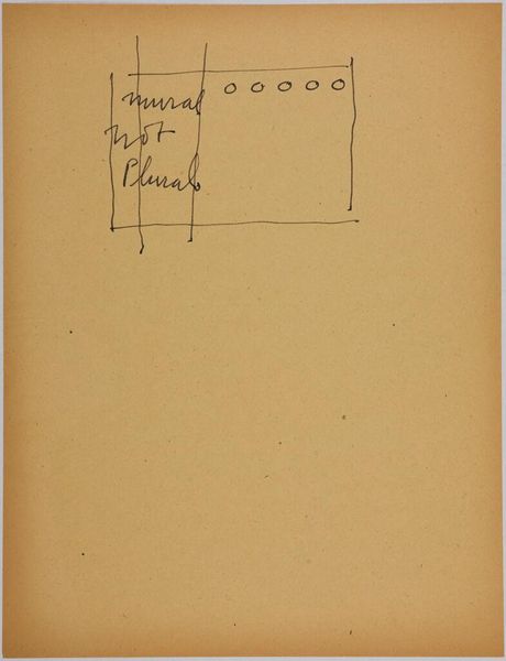 Curator: This is Stuart Davis's "Sequence Analysis Diagram," a sketch currently residing at the Harvard Art Museums. Editor: It feels like a secret code, doesn't it? Like a blueprint for some sort of… abstract machine? Curator: Davis was deeply interested in structure, in how we perceive and order information. Look at the geometry, the arrangement of the squares and lines. Editor: The handwritten title really sells the whole analytical vibe. I'm curious, though, what "sequence" he's diagramming. Curator: Perhaps the sequence of perception itself? Or the structure of a painting before he even put brush to canvas. It is a window into his thought process. Editor: It's so simple, yet it makes me think about how we organize the chaos of the world into neat little boxes—or, in this case, squares. Curator: Absolutely. Davis uses familiar shapes to explore how we create meaning from even the most basic elements. It’s a dance of order and potential. Editor: It's wild how a few lines on paper can ignite so many questions. I’ll be pondering this one all day.