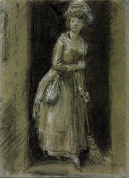 Ernest Hébert rendered "Adela" with charcoal and white chalk, capturing a figure with roots stretching back through centuries of art. Consider the pose: hand on hip, basket nearby. It evokes images of women from classical antiquity, figures of labor and strength. Think of the caryatids supporting structures with unwavering resolve. The basket, too, is not merely utilitarian; it’s a vessel, symbolic of nurture and provision. We see echoes of this motif throughout art history, recurring in depictions of peasant women. But the gesture, the weight of the basket, carries a deeper resonance. It is like the ancient memory of sacrifice and sustenance. This image taps into a collective unconscious, stirring emotions tied to our shared human experience. Observe how the headdress also has a symbolic function. It is a sign of modesty and piety and appears in countless religious paintings throughout history. Yet, it has also signified status, evolving through various cultural interpretations. The threads of meaning weave and intertwine, transcending time and place, resonating with each new viewing.