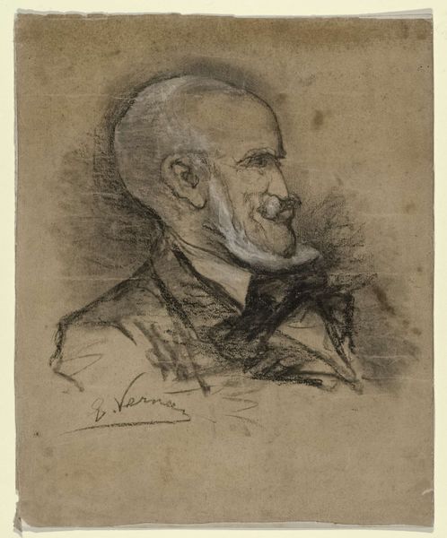 This is Bernardus Johannes Blommers's portrait of artist Frederik Hendrik Weissenbruch, made using etching. The image is defined by the incised lines, a result of the artist drawing into a prepared ground on a metal plate, which is then submerged in acid. This is a printmaking technique that lies in a fascinating territory between the unique gesture of drawing and the repeatable nature of industrial production. Looking closely, you can see the characteristic 'bite' of the acid, and imagine the artist carefully controlling the depth and character of each line. The resulting image has a directness and immediacy, but don’t forget this was a laborious process. In its time, etching was a modern, progressive medium, and the democratic potential of printmaking allowed for wider audiences, challenging traditional notions of art as unique, precious objects.