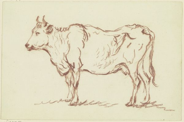 Friedrich Wilhelm Hirt rendered "Standing Cow to the Right" in an expressive sketch, now held at the Städel Museum. Cows, throughout art history, have been symbols deeply interwoven with pastoral life, and the agricultural economy, representing sustenance, fertility, and a connection to the land. In 19th-century Europe, the image of livestock carried implications about rural life, and the changing social structures due to industrialization. Hirt's sketch is a sensitive portrayal, capturing the animal's physical presence, and perhaps alluding to its symbolic weight. The cow stands, not as a mere farm animal, but as a quiet witness to the transformations of its time. With each line, Hirt invites us to consider our relationship with the natural world, and the roles we assign to the animals within it. This simple sketch encapsulates complex narratives about identity, history, and our enduring connection to the earth.