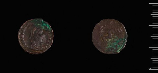 Curator: This is an ancient coin, an AE4, from Alexandria, created under Constantine I. It offers a window into the political and economic landscape of the Roman Empire. Editor: It looks haunted, doesn't it? Like a little bronze ghost whispering secrets. Curator: The material itself—bronze—speaks to wider questions of value, trade routes, and imperial control. The portrait on the coin projects a constructed image of power. Editor: I feel the weight of history just looking at this thing. Like, someone actually touched this, used it, dreamt with it in their pocket. Curator: Absolutely. Currency literally embodies authority, but also reflects societal values, biases, and power dynamics. It's a form of propaganda, really. Editor: Right. So this isn't just a pretty face on some metal; it's a story of control. Makes you wonder about who gets remembered and who gets erased. Curator: It's a potent reminder of how even the smallest objects can carry immense cultural weight. Editor: Definitely gives a new meaning to "penny for your thoughts"!